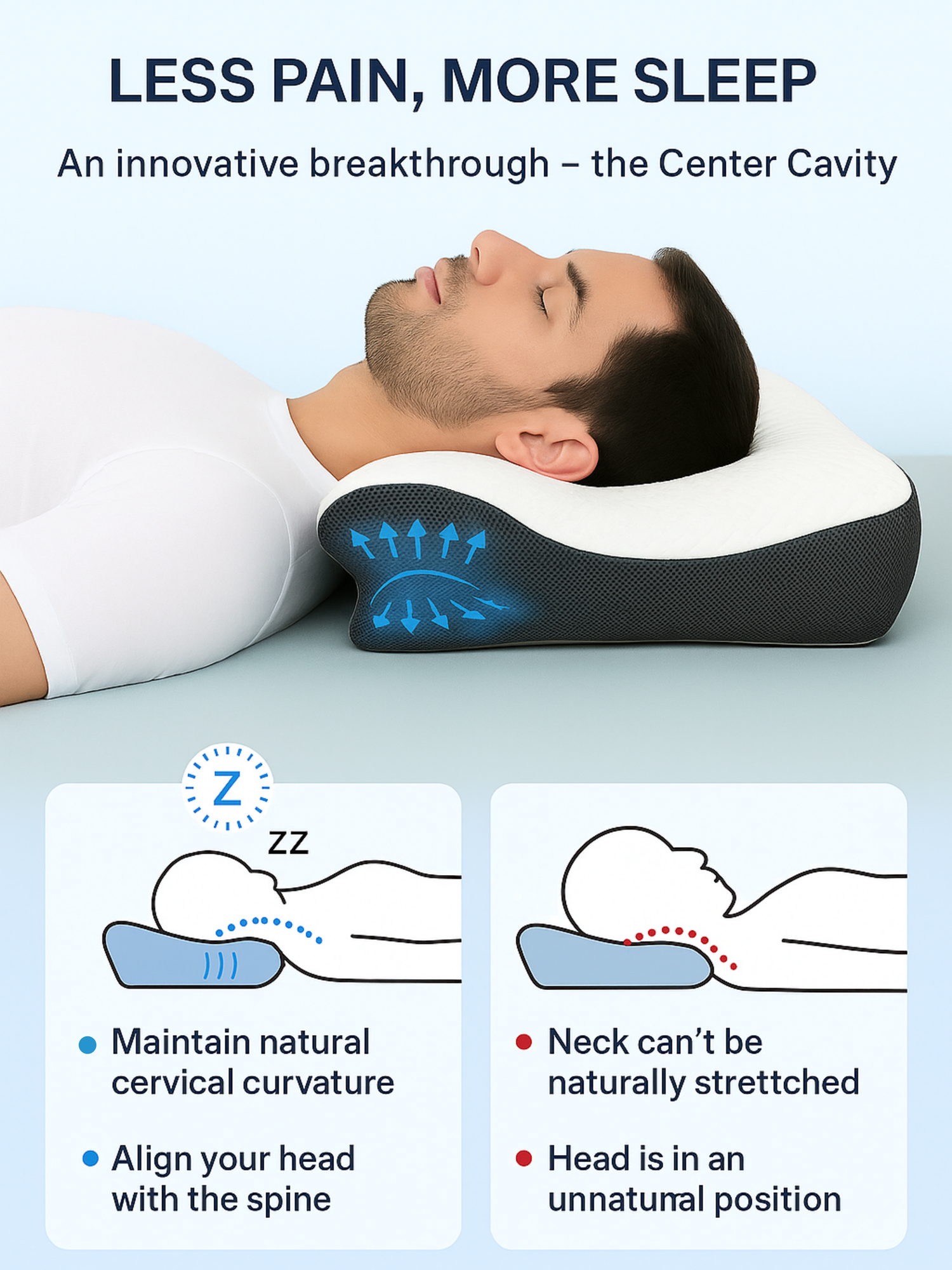 Say goodbye to stiff necks and restless nights. Our ergonomic pillow is designed to cradle your head and support your neck—so you wake up feeling recharged and pain-free.